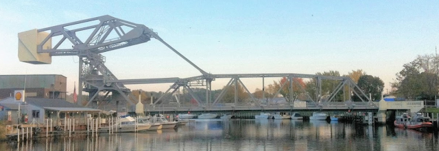 Historic Bridges explains that the design of this bridge is a Brown Bascule Bridge. As far as I'm concerned, it is simply a variant of Strauss Trunnion design. So I labeled these notes as bridgeStrauss as well as bridgeRare. Historic Bridges provides a link to the 1922 patent, but I'm not going to read it to figure out why it qualifies as a different design.