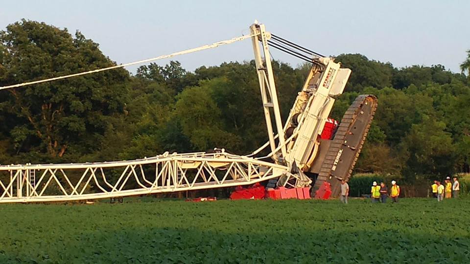 | James Akey posted Oops Gary Calhoun Michael John is this you? Michael John Sshh!!! Howd you get pictures already Mark Dilts I think it was 170/170 She "was" tall... Steve Ellsworth They say he did it empty hook going after rigging John Moran Another wind farm job Jay Pettet Is this the one in Shelby North Carolina? Fred Dugger Yes [It is an 888 and the counterweights are pinned. Otherwise this could have been a lot worse.] |