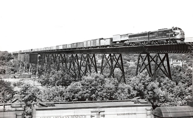 Chicago Great Western Freights on the Des Moines River ViaductThe location is Fort Dodge, Iowa, on the Clarion, IA to Council Bluffs, IA main.Captions with photos