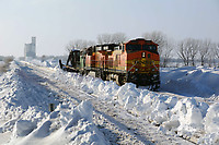 | trains (source) "BNSF Railway’s Scenic Subdivision: A view from my office chair, with the right-side big wing out. We are plowing the siding at Scenic Eastward at 11:07 a.m. on the morning of Feb. 9, 2008. Michael Sawyer" |