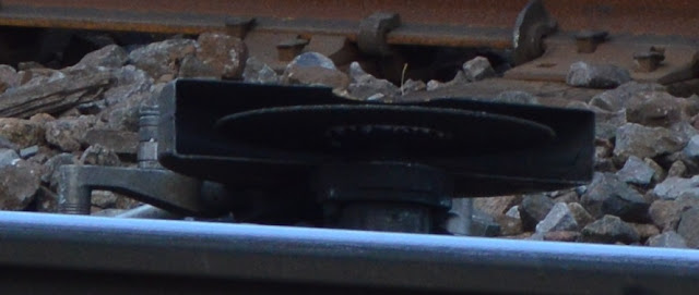 I can't guess what the other gizmos are for. It appears the worker is verifying that the new joint has good conductivity. I assume the new signalling system work like the old one did --- it detects block occupancy by the wheels conducting electricity from one rail to the other and completing a track circuit. I've read that trains have to have a minimum number of units to insure that there are enough wheelsets (axles) to provide a good electrical connection between the rails. That would explain why the Hi-Rail trucks don't trip the crossing gates. They have to wait at Main Street for traffic to clear in both directions before they can cross.