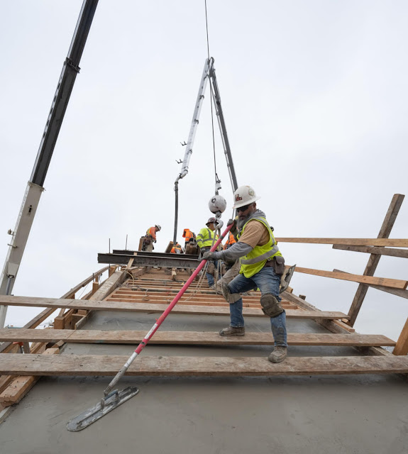I zoomed in on the view from 7th Street because it caught the boom of a concrete pump truck in action.